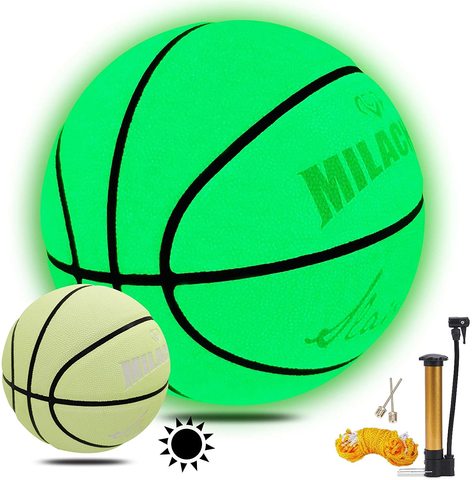 Basket-ball en cuir brille dans le noir, avec pompe, éclairage vert, basket-ball de nuit holographique, d'extérieur, 29.5